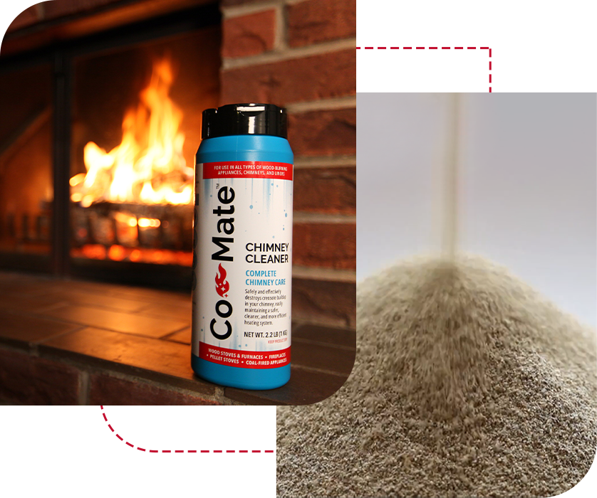 Co-Mate® Chimney Cleaner is a coarse, free-flowing powder that is activated by the fire inside your wood-burning appliance to actually enhance combustion chemistry and alter the ash formation process.